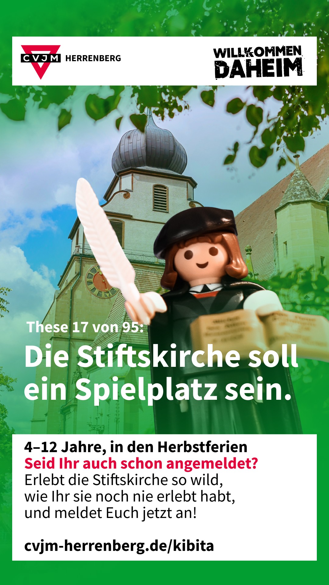 Und das erste Mal haben wirklich alle die Möglichkeit mitzuplanen: Mach jetzt mit und lass Deine eigenen Thesen für vier unvergleichliche Herbsttage in der Herrenberger Stiftskirche da oder sieh nach, welche Ideen uns schon erreicht haben. Schaffen wir gemeinsam 95 Thesen für neue Kibita?